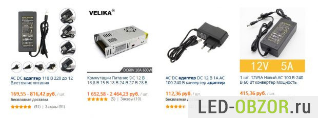 Так же можно обратить вниманием на продавцов, которые специализируются на продаже светодиодного освещения и светодиодных лент. Среднее энергопотребление светодиодной ленты 12В составляет 30-50W на 5 метров, могут продаваться комплектами с источником питания. Лента обычно продаётся катушками по 5 метров и покупатель сразу может проверить напряжение на блоке питания 12V под нагрузкой.