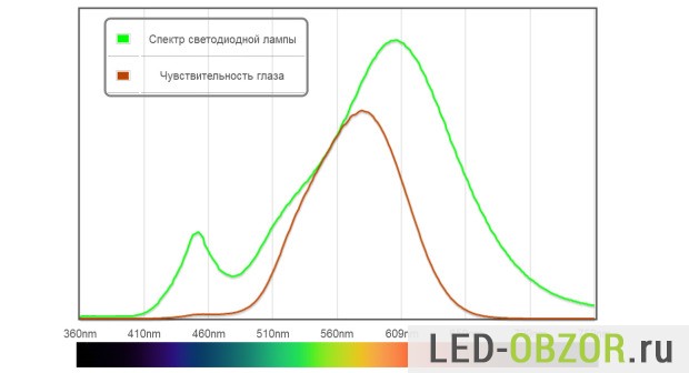 Дешевые светодиоды имеют очень ужасный состав спектра света. Сперва этому большого значения не придавали, в настоящее время есть источники с хорошим спектром. От качества спектра зависит ваше зрение, особенно школьников, которые фокусируют взгляд на мелких буквах. Теперь и чертежники в НИИ выдвигают требования по этому параметру, чтобы сохранить зрение своим сотрудникам. Проще говоря, спектр, это когда яркость хорошая, а освещает плохо.
