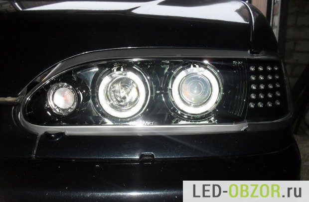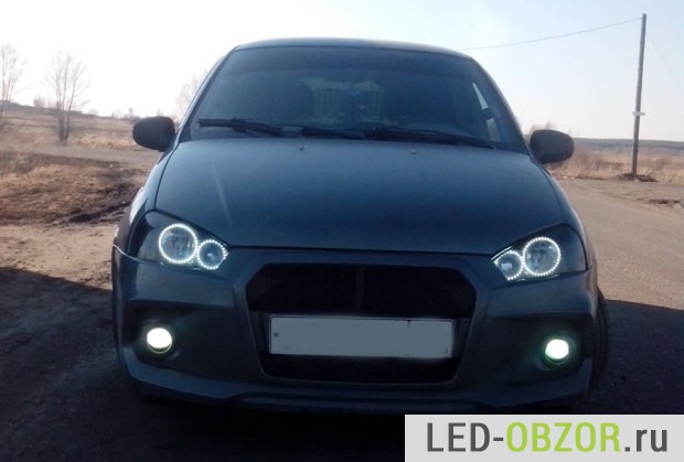 Среди отечественных автомобилей второе место по популярности занимают ангельские глазки на ВАЗ 2114, первое место делят Приоры и ВАЗ 2106, которые имеют круглую форму отражателей.