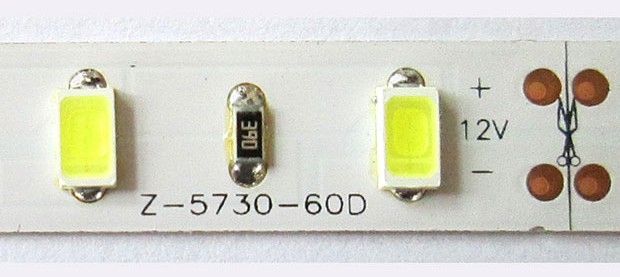 Рассмотрим самые мощные светодиодные ленты SMD 5630 и СМД 5730. Они по популярности сильно уступают другим модификациям на диодах 3528 и 5050. Устанавливать их можно только на теплоотвод в виде алюминиевого профиля, или на поверхность, способную отвести тепло.