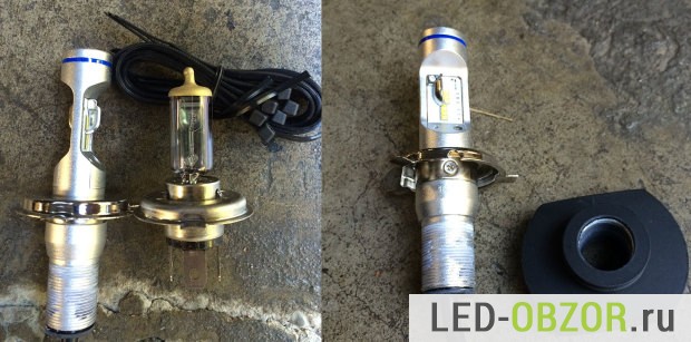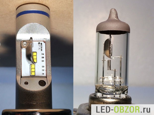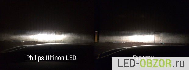 Диодные лампы в отличие от галогенок на нагрев расходуют меньше энергии. При высоком КПД светодиода будет выделяться меньше тепла, соответственно радиатор для охлаждения будет иметь минимальные размеры, как в случае с нашими Филипсами Ултинон Н4