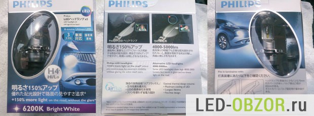 Информации по светодиодным лампам ближнего и дальнего света Philips Ultinon с цоколем H4 очень мало. Даже в Америке они доступны только по предзаказу по цене 270$ за комплект, что в рублях будет 17.000 р. Стоимость первое время обуславливается новизной товара, вероятно потом цена снизится раза в полтора, да и конкуренты не дремлют. Такие затраты на покупку будут со временем оправданы за счет большей долговечности, чем у ксенона.