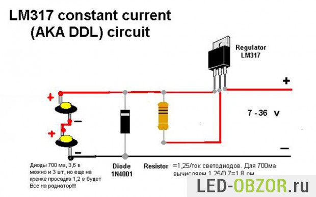 - ток 1-5 Ампер, радиатор 20 кв.см. на каждый ампер;
