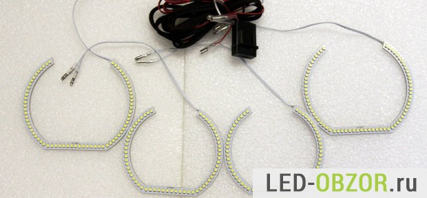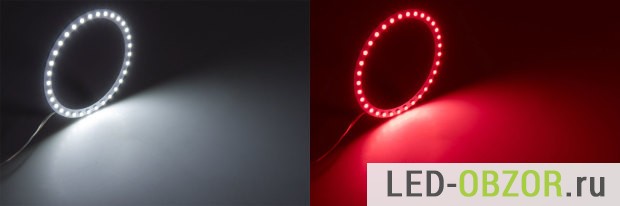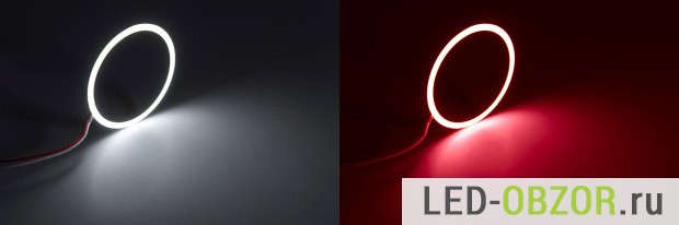 Многие водители хотят использовать светодиодные кольца как дневные ходовые огни. Этого делать категорически нельзя. ДХО имеют определенную силу света, световой поток от 600 люмен и угол свечения в 30 градусов. Светодиоды имеют 200 люмен и светят на 120 градусов в стороны. По сути представляют из себя яркие габариты, ДХО из них никак не получится.
