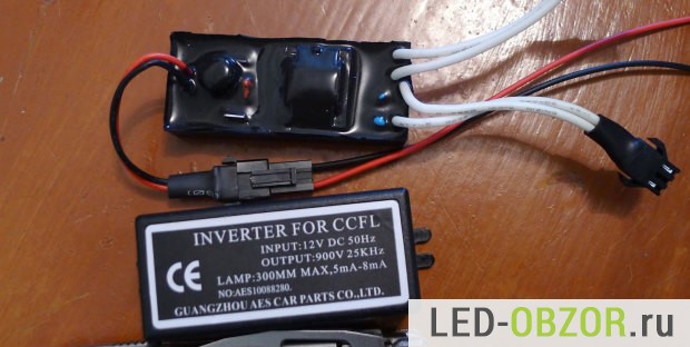 Для длительной работы требуется качественный блок розжига. У CCFL он высоковольтный, розжиг происходит при напряжении 900В. У диодных это стабилизатор напряжения на 12В или драйвер. Они защищают LED кристаллы от скачков напряжений в электрической сети автомобиля, которые могут быть до 30В. Внутри залиты компаундом, для защиты от воздействия влаги.
