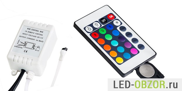 Особенно выделяются RGB модель, которая может светить любым цветом. Контроллер смешивает красный, зеленый и синий, получая любые цвета и оттенки. Смена цветов производится пультом дистанционного управления, как от светодиодной ленты. Для управления может использоваться инфракрасный или радиоканал. Использование радиоканала предпочтительней, его которого до 10 метров. Инфракрасный работает по принципу пульта от телевизора, надо направлять.