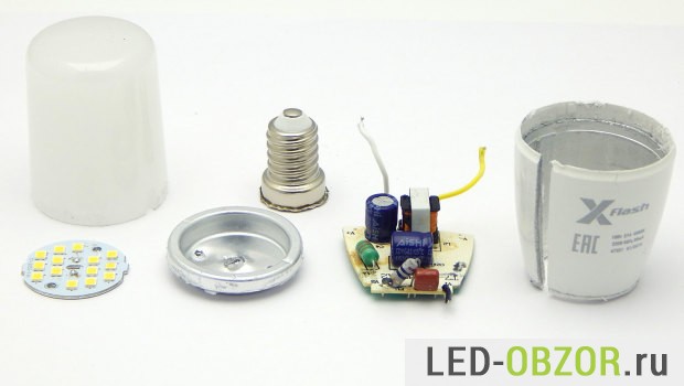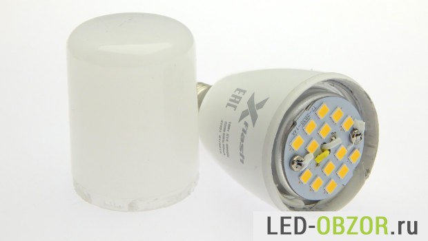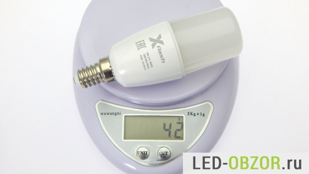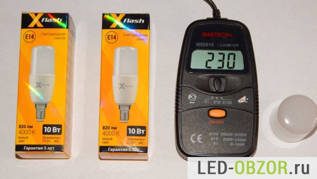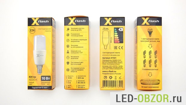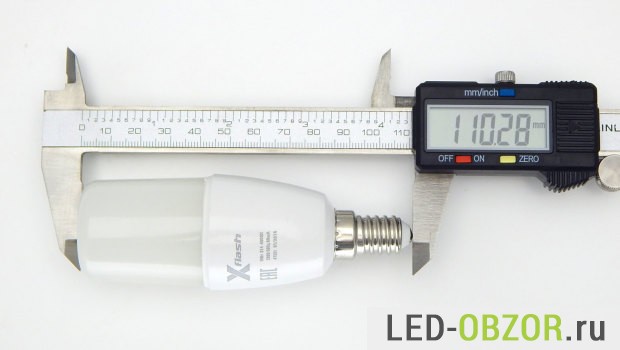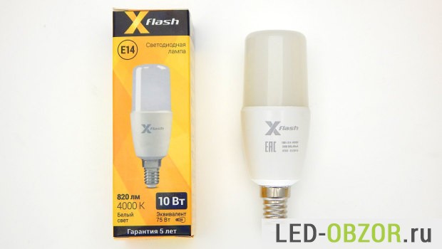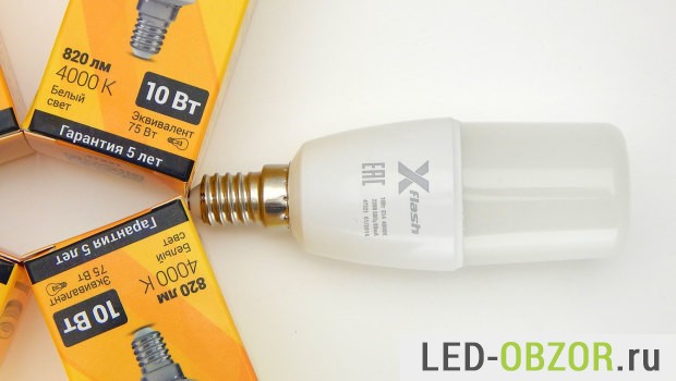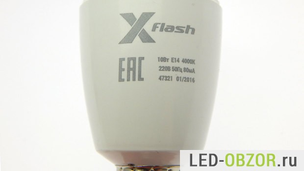 В обзоре участвует LED лампочка E14 с обозначением «X-Flash XF-E14-TC-P-10W-4000K-220V». Такой цоколь еще называется миньон, диаметр цоколя составляет 14мм. А для E27 будет 27мм. соответственно.
