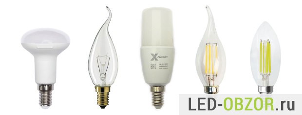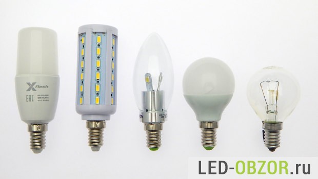 На фото другие светодиодные лампы E14, сравнение слева направо: