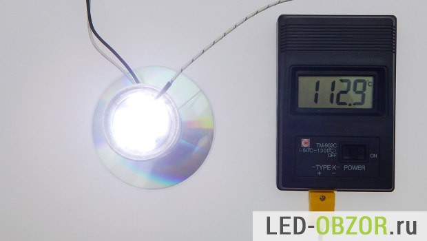 Матовый рассеиватель незначительно влияет (всего 3,5°) на нагрев светодиодов, что говорит о качественном отводе тепла.