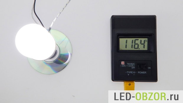 Для измерения нагрева светодиодов и корпуса буду использовать инфракрасный пирометр и термодатчик (термопара). Предварительно работала в течение 1 часа.