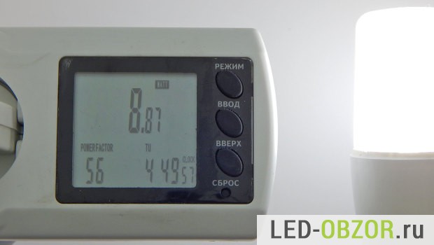 После 30 минут работы потребление упало до 8,9W при этом световой поток соответствует обещанному. Ставим еще 1 плюсик, потребление энергии ниже, а светит как обещано.