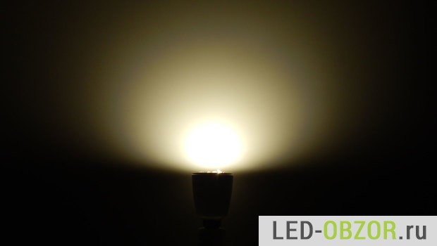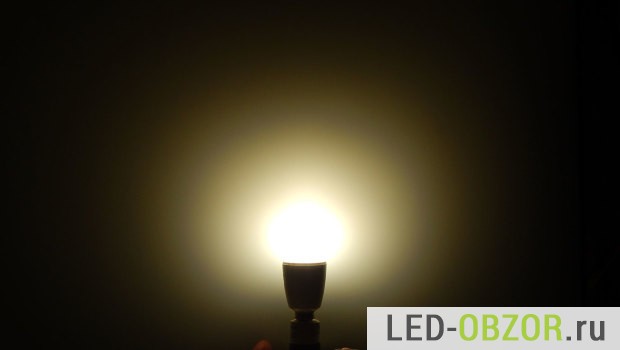На фото видно распределение света с колбой и без неё. Как вы видите, свет хорошо рассеивается, примерно соответствуетобещанным 270 градусам.