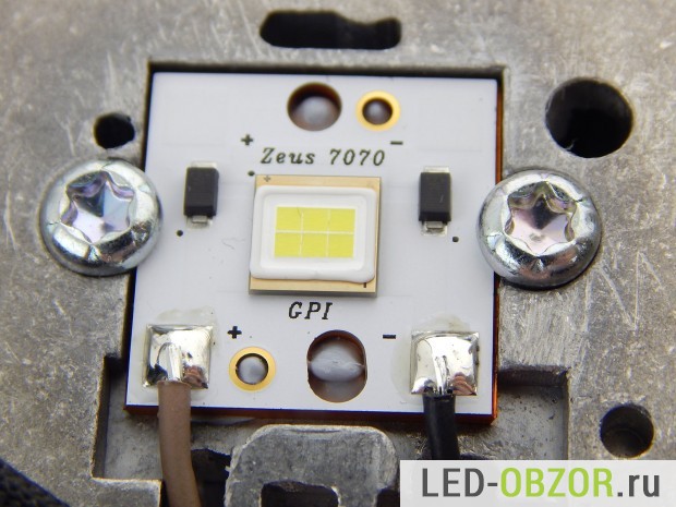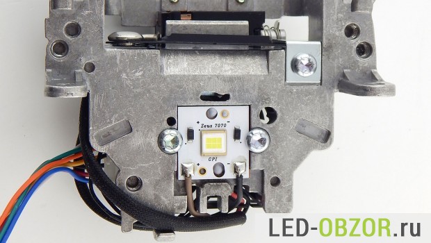 В светодиодных линзах для автомобильных фар установлены светодиоды разных производителей. Кроме фирменных Osram, LG, Cree есть малоизвестный китайский вариант Zeus 7070. Он относится к специализированным, рассчитанным на ближний и дальний свет свет. Производитель http://www.gpiled.com/cob обещает приличные характеристики на него, но спецификации не раскрывает.