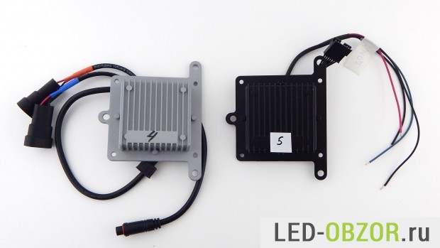Блоки питания Би Лед модулей обеспечивают хорошую стабилизацию тока, пульсации светового потока на уровне 1-2%, то есть практически равны нулю. Китайские производители не любят изобретать и предпочитают использовать стандартные и проверенные решения. Половина корпусов одинаковые, но начинка разная, это видно по разным проводам и типам коннекторов.