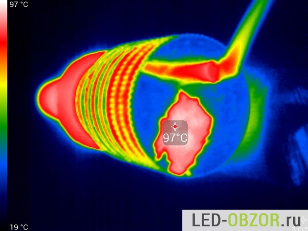 Радиатор равномерно прогревается, в месте подключения провода питания температура 97°
