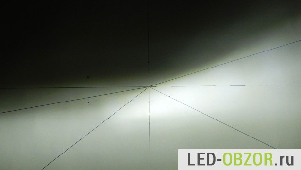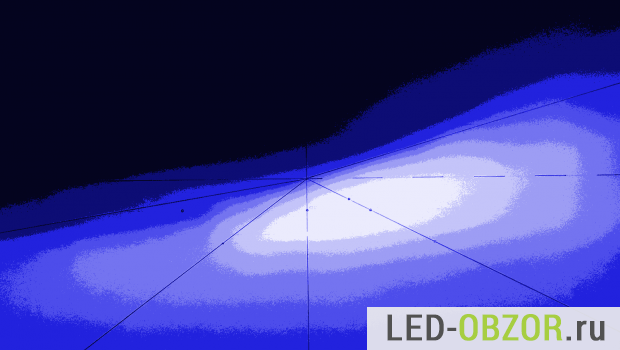Светотеневая граница образцов очень хорошая, ослепление в точке B50L отсутствует. Фокусирование правильное, свет не размазан бесформенным пятном. Такое встречается редко, не более 5% от общего объёма существующих лампочек. По моим многочисленным тестам и судя по ассортименту магазинов, 95% диодных автоламп непригодны для эксплуатации в автомобиле. Поэтому выбирайте проверенные модели, читайте подробную статью про выбор светодиодных ламп H4 ближнего дальнего света.