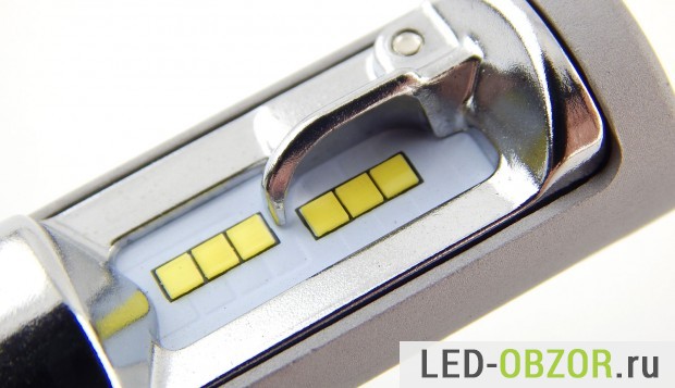 В образцах используются led диоды Seoul CSP (WICOP2). WICOP2 это новая технология изготовления бескорпусных светодиодов, которая делает процесс производства более простым и дешёвым. По размерам и мощности они сопоставимы с популярными Philips Z ES. Но в светодиодных лампах H4 многое зависит насколько падает световой поток после прогрева. При нагреве светопоток у Philips Z ES снижается на 20%.