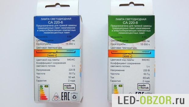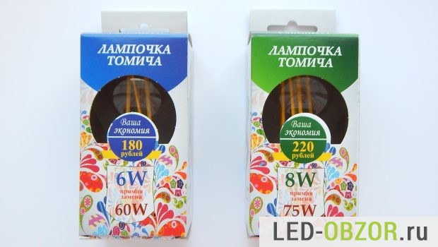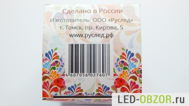 Маркетологи отчаянно постарались, разукрасив упаковку узорами, наверно под хохлому или томскими народными. Указана сумма, которую вы сэкономите за время работы современного светового прибора.