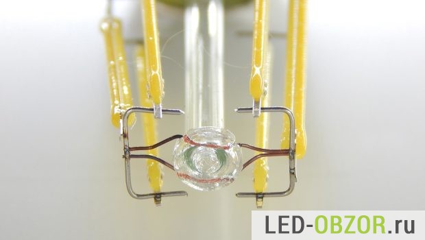 При использовании нитевидных диодов в стеклянной колбе имеется преимущество по сравнению с обычными светодиодками. Исключены проблемы связанные с плохой сборкой, а именно плохой контакт с системой охлаждения, состоящей из металлического или керамического радиатора. Это выражается в неровностях соприкасаемых поверхностей, что затрудняет отвод тепла. Еще часто встречается плохое нанесение термопасты или её малое количество.