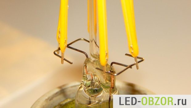 Проволочные контакты, на которых они закреплены, достаточно гибкие. Их можно разогнуть и расположить филаментные диоды в одной плоскости.