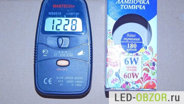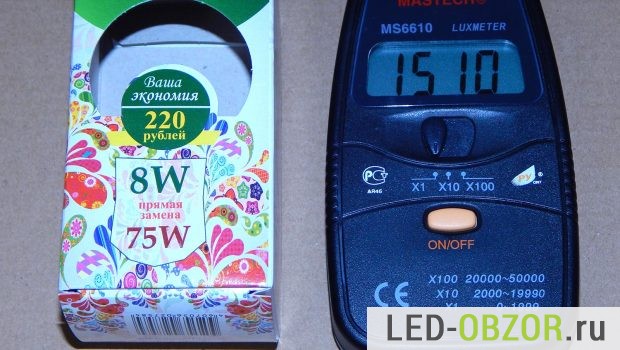 Измерения проводились в кубе со светоотражающими стенками. Значения люксметра делим на коэффициент 2,16, чтобы из Люксов получить световой поток в Люменах.