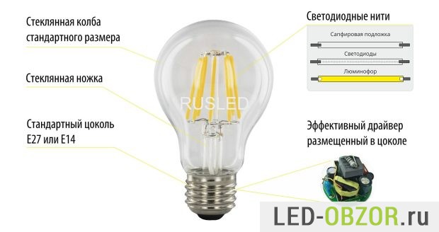 Конструктивно сильно отличаются от обычных светодиодок для дома. Но основное отличие это отсутствие радиатора. А в остальном используются те же элементы, драйвер и нитевидные светодиоды.