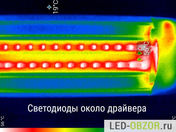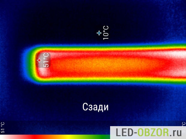 Нагрев корпуса проверяем тепловизором. По правильному измерению температуры светодиодов я консультировался у специалистов компаний Cree, Philips и Osram. Система охлаждения сделана с большим запасом, поэтому светодиоды практически не греются. Низкий нагрев обеспечить минимальную деградацию и длительный срок службы.