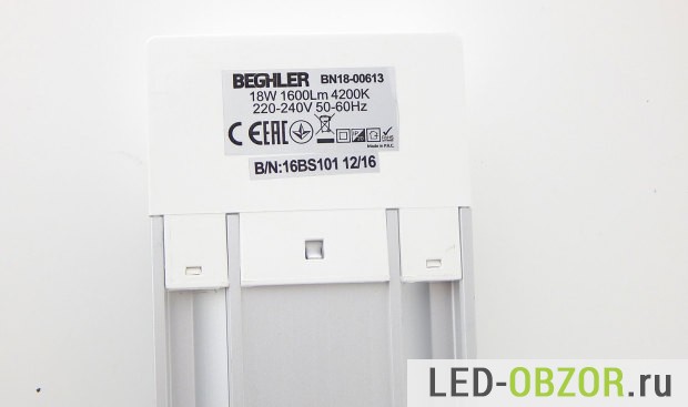 Заявленная мощность образца 18W, полная маркировка Beghler BN18-00613. Называется линейным из-за формы корпуса, узкой и длинной.