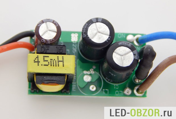 О качестве драйвера можно судить по коэффициенту пульсаций и диапазону рабочего напряжения. Образец сохраняет свои характеристики при снижении напряжения питания с 220В до 120В. Это говорит о хорошем источнике питания, обычно минимальное рабочее напряжение бывает 160-170 вольт.