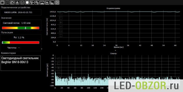 Пульсации светового потока полностью отсутствуют, этот показатель равен 1,2%.