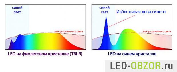 В спектре современных светодиодных источников света присутствует очень много синего света, интенсивность которого в 2 раза выше, чем у других составляющих спектра. Это пагубно влияет на зрение. Глазу не заметны недостатки искусственного освещения, однако человеческий организм реагирует на негативное влияние светодиодного света — нарушаются многие процессы в организме. Например, пульсации света от ламп освещения с частотой 100 Герц человек не может заметить, но их воздействие приводит к ухудшению самочувствия. Чаще всего это утомление глаз, повышение давления, снижения трудоспособности, головные боли и другие симптомы. Не все к этому чувствительны, но лично на себе испытал все недостатки дешёвого освещения. На старой работе, когда приходил в офис, через 30-60 минут у меня пропадала вся трудоспособность, хотя до этого было хорошее настроение. Сильно сохли глаза, быстро наступало утомление.