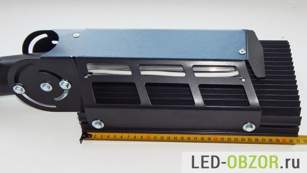 Срок службы заявлен 10 лет при работе 12 часов в сутки, в сумме получается 43800 часов при снижения яркости до 70%. Учитывая, что в среднегодовая температура России в среднем от +1° до +6°, то от температуры нагрева можно вычесть 15°- 20°. То есть средняя рабочая температура диодных элементов не будет превышать 50° — 55°, что обеспечит заявленный срок эксплуатации. Диодные уличные прожектора днём не работают, поэтому в рабочем режиме он не будет нагреваться солнцем.