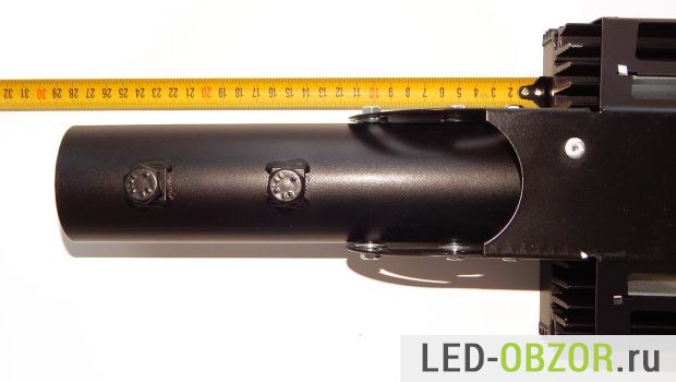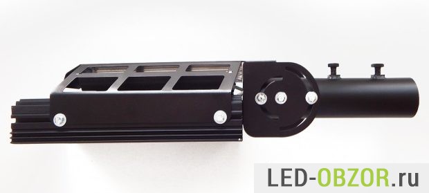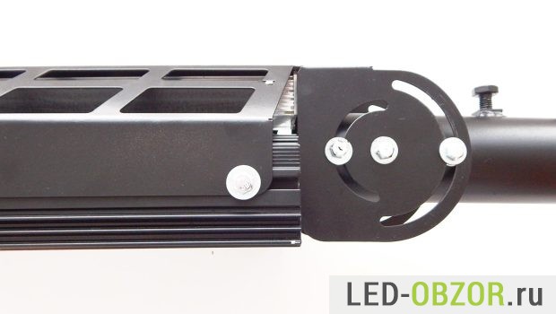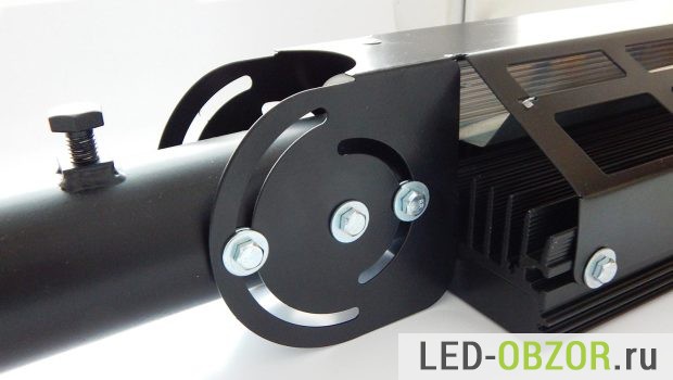 Угол поворота составляет 180°, направление света можно легко менять на любое направление без каких любо доработок. Механизм соединяется при помощи 6 болтов, которыми и фиксируется положение. Так как болтов не 2-3 штуки, то положение фиксируется намертво и не разболтается со временем от ветра.