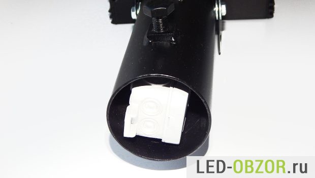 Сперва отделяем трубу поворотного механизма и свинчиваем радиатор из крепления. В электрических соединениях не используются штекеры, которые могут со временем окисляться и снижать надежность изделия. В трубе находится распределительная коробка для соединения проводов.