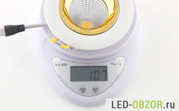 Производитель указал заниженное значение, световой поток оказался 630лм, что выше обещанных 550лм. Это на уровне 105лм/вт, средний показатель для хорошего COB LED.