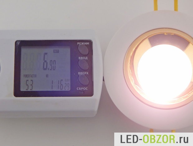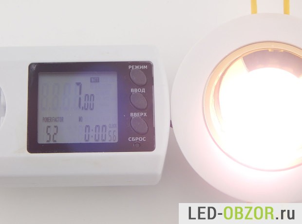 Мощность строго соответствует заявленной, после прогревания практически никак не изменилась, что косвенно говорит о качественном диоде. У плохих светильников на 15W, она падает до 13,5W при нагреве до 70°, это очень много.