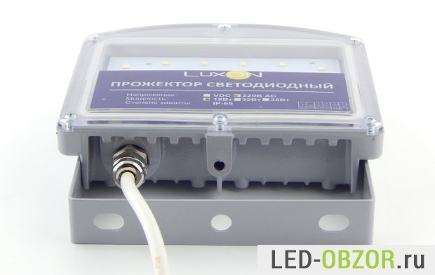 Поликарбонатное стекло прижимает уплотнитель к корпусу. Отверстие подключения кабеля питания на 220В снаружи закрыто герметичным коннектором, внутри залито полупрозрачным герметиком. Благодаря IP65 светильник не должен «потеть» и образовываться конденсат. Пример запотевания вы можете увидеть на автомобильных фарах, особенно после влажной погоды.