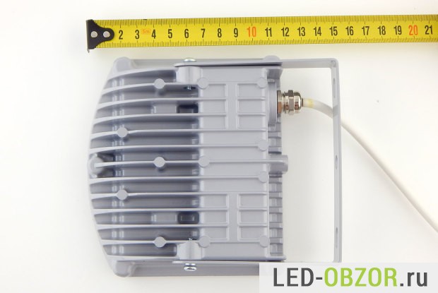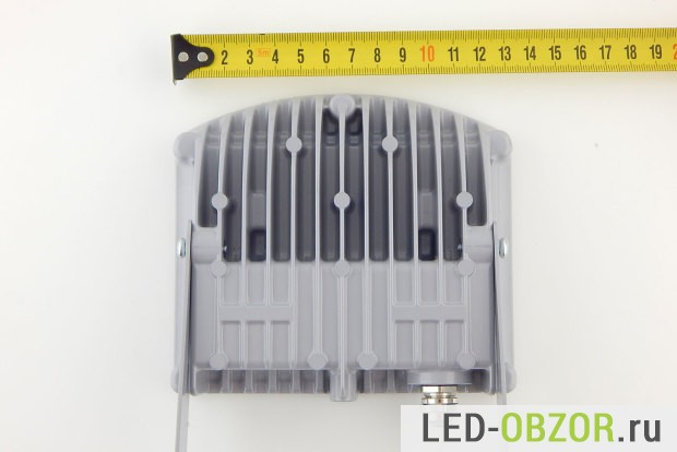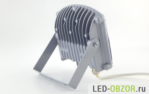 Конструктивно LED прожектор для уличного освещения выполнен в виде моноблока. В одном герметичном объёме находятся LED элементы и блок питания. Влагозащищенный по стандарту IP65, вода и пыль внутрь не попадут, пока вы его не утопите.