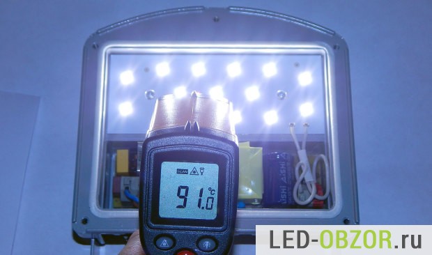 При эксплуатации в тёплом климате и постоянном нагреве до 90° проработает 43.000 часов. В зимнее время года при -15° он будет нагреваться в среднем до 50°, что обеспечит ему работу на 70.000ч. Это хорошие показатели, ширпотреб обычно не дотягивает и до 10.000ч. эксплуатации и требует ремонта или замены светодиодов.