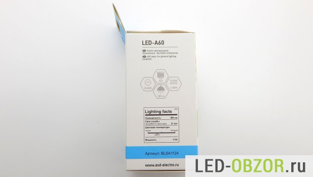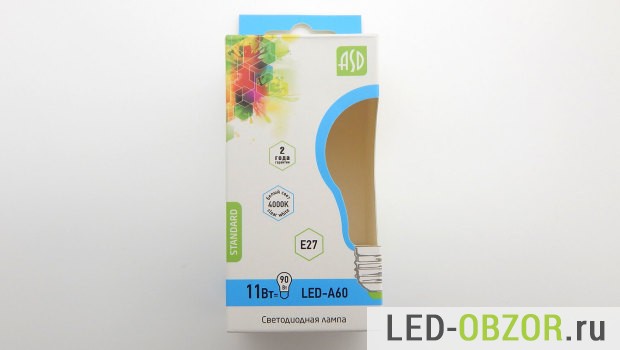 Многим знакома недорогая светотехника производства компании ASD. Большую популярность она получали благодаря низкой стоимости, а когда видишь такие цены, сразу приходится задумываться о качестве. На распродаже в местном магазине купил несколько светодиодных ламп ASD A60 с цоколем Е27 и Е14 мощностью 11Вт. Еще на 7Вт и 5Вт. Первые стоили 103руб за штуку, вторые по 87р.