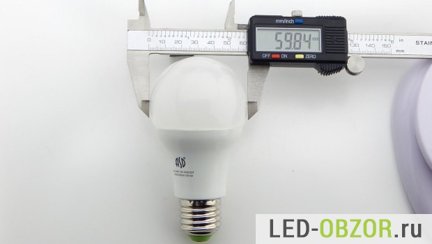 Габариты ASD лампы соответствуют среднему размеру, самому распространенному. Диаметр на 5мм больше стандартной шестидесятки накаливания. Для наглядности на фото можно видеть габариты по сравнению с филаментной и накаливания.