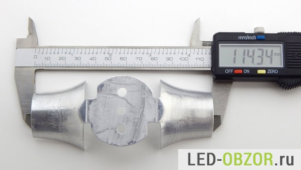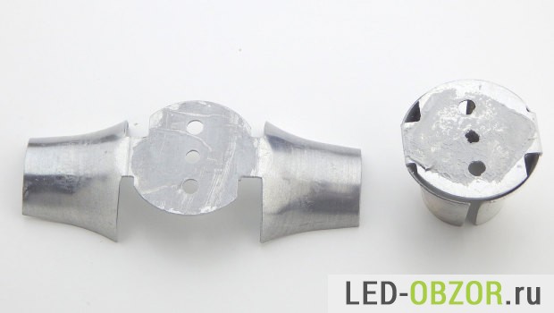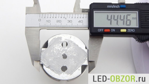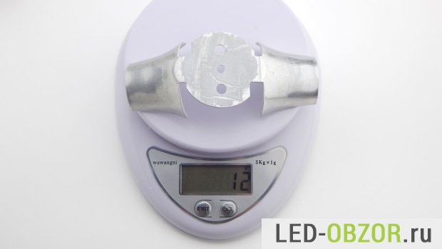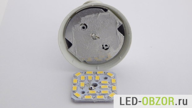 Термопасты не пожалели, намазано обильно. Судя по её отпечатку на алюминиевом радиаторе, светодиодный модуль с SMD 5730 прилегает плотно. Форма радиатора не самая лучшая, к центральному кругу боковые лепестки крепятся через узкие перемычки шириной 15мм. Сложно сказать без тепловизора насколько сколько они влияют на отвод тепла от центра.