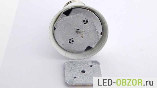 Внутри расположен небольшой радиатор из пластинки алюминия. Мягко говоря, он простоват и маловат, к тому же от внешней среды изолирован пластиковым корпусом. То есть тепло никуда не уходит и остается внутри.