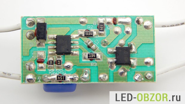 Драйвер миниатюрный, с двухсторонним монтажом электронных элементов для уменьшения размеров.