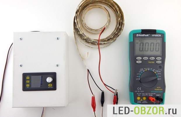 Производитель заявляет мощность 14,4 Вт/м. Измерим энергопотребление несколькими способами подачи питания.