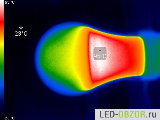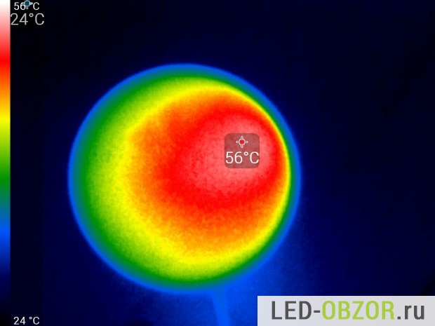 Перед снимком светодиоды прогреваются закрытые матовой колбой, затем она снимается и делается фото. Таким образом полученные градусы соответствуют штатному режиму работы.