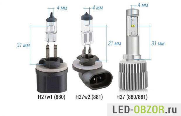 Существует несколько вариантов реализации дневных ходовых огней на основе головного света автомобиля. Рассмотрим вариант с установкой светодиодных ламп H27 (880/881)в противотуманные фары.