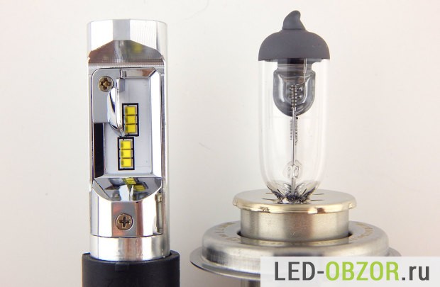В обзоре участвуют светодиодные лампы H4 ближнего и дальнего света, предоставленные недовольным автолюбителем.