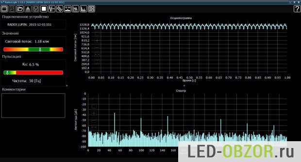Если вы занимаетесь освещением, то рекомендую приобрести прибор Radex Lupin, лучший люксметр и измеритель коэффициента пульсаций. Он подключается к компьютеру через USB и работает совместно с программным обеспечением. Программа показывает спектрограмму и осциллограмму. У меня второй Radex Lupin переделан в прибор для измерения светового потока.