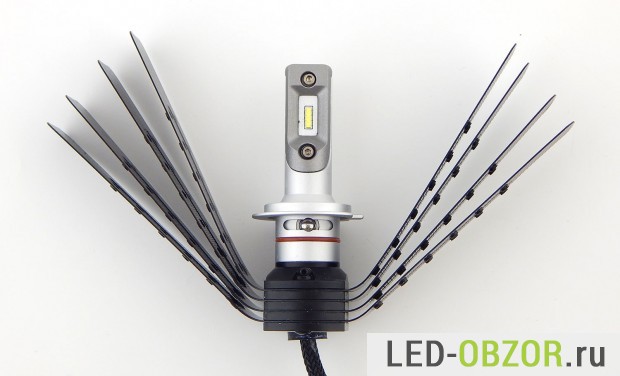 Результаты тестирования показали отличные результаты по работе в рефлекторной фаре и линзе. Светотеневая граница как у галогена, распределение света в горячем пятне тоже правильное. В своей лаборатории протестировал более 70 диодных лампочек, у данных образцов самый низкий нагрев светодиодов для такой мощности, что сильно увеличивает надёжность и срок службы светодиодных автоламп. В целом конструкция получилась оптимальной, не требует приобретения увеличенных крышек для фар. По характеристикам эти лампы входят в тройку лучших с цоколем H7. Если сравнить между собой лидеров рейтинга, то скорее всего они займут первое место.